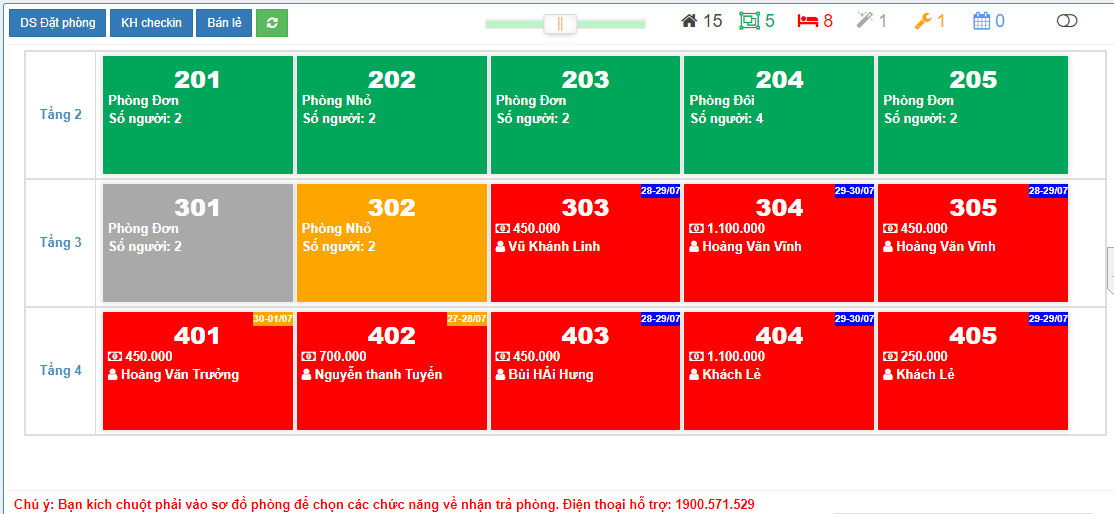– Giao diện rất thân thiện trực quan .Bạn chỉ cần nhìn trên sơ đồ phòng đã thấy tất cả các thông tin cần thiết :